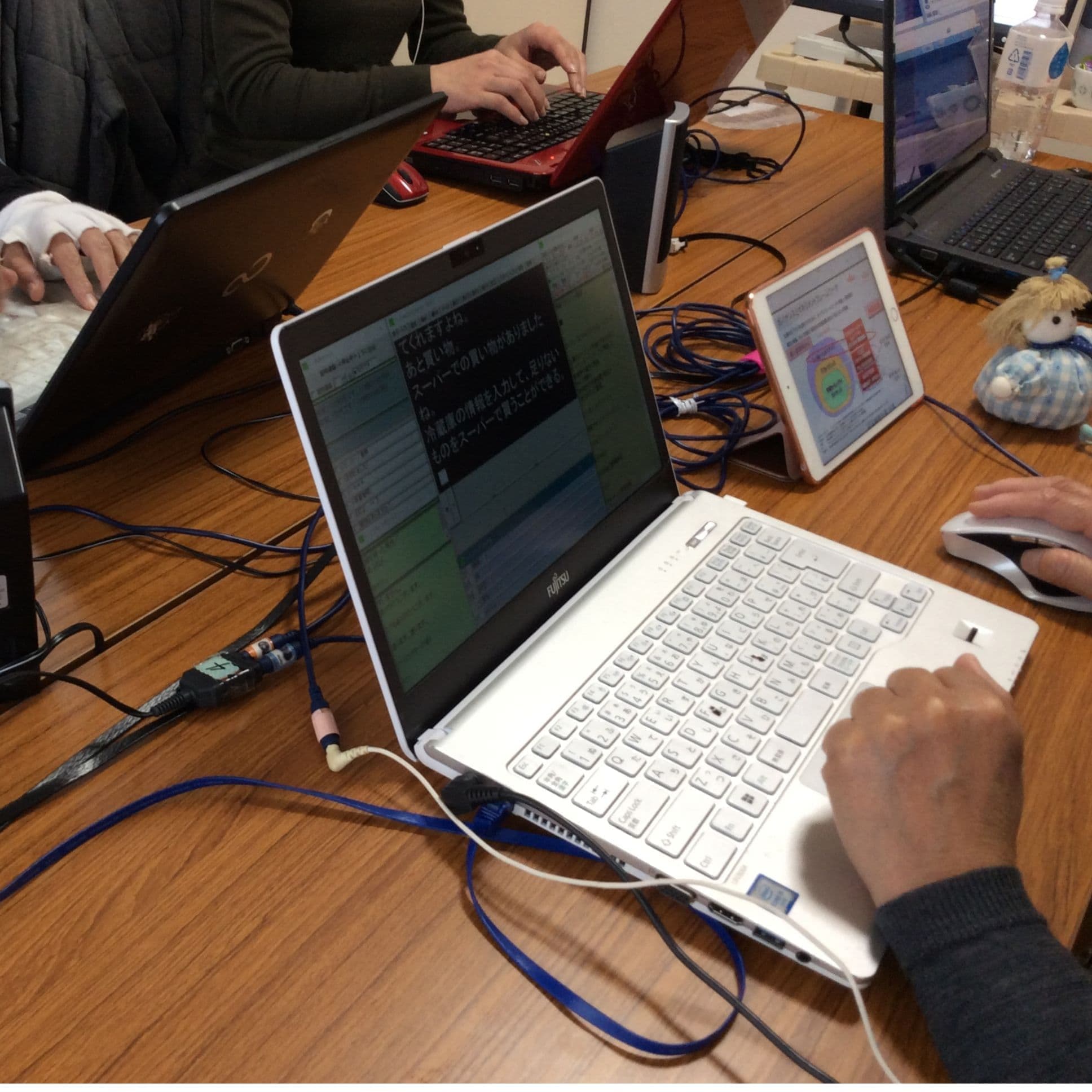 チームW・研修センターは、リアルタイムに『音声を文字』にして、聞こえに不自由のある方ともスムーズなコミュニケーション環境を整えています。今までの現場経験を活かして、その場に応じたハイブリット字幕配信(文字通訳)を提案します。