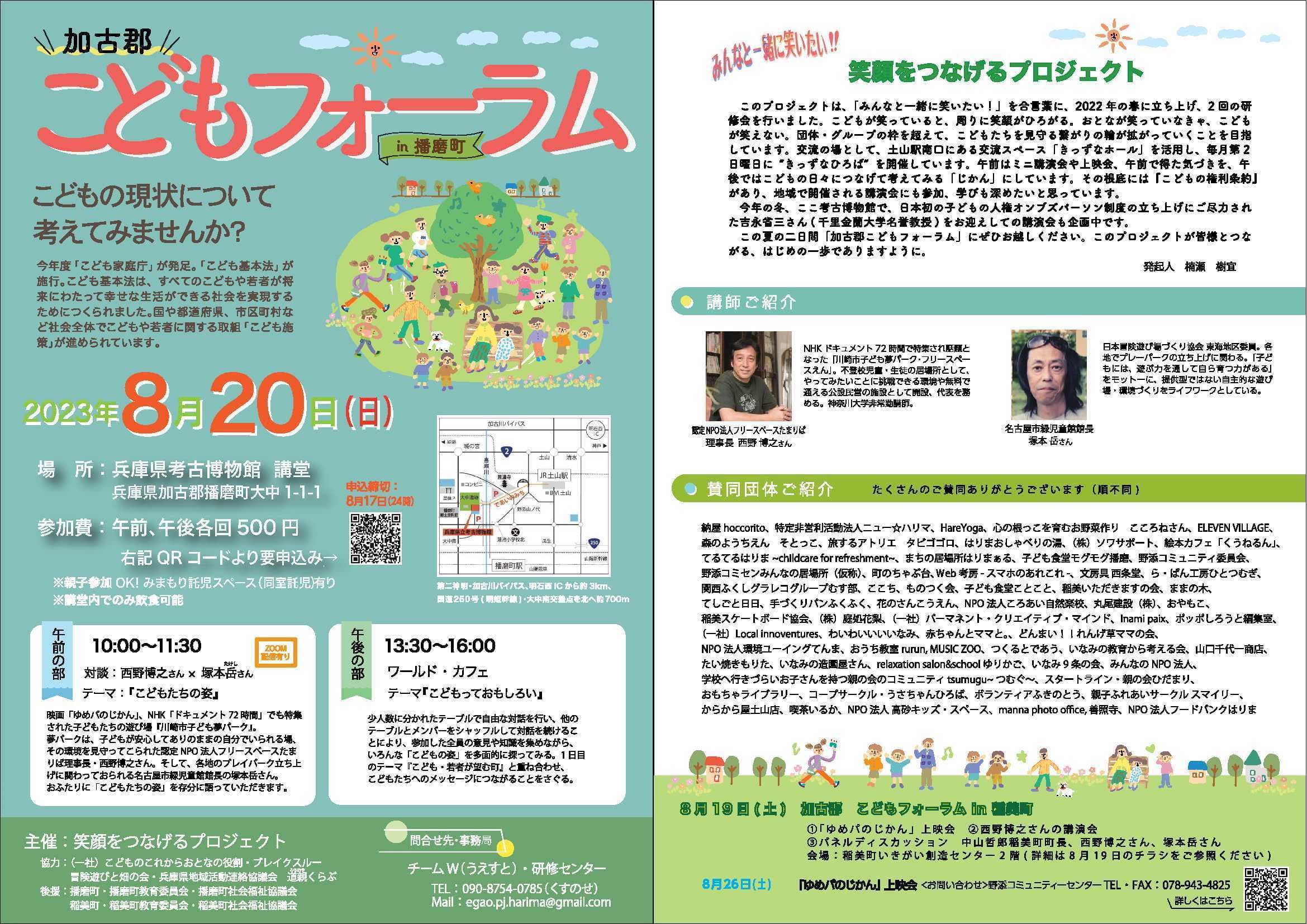 お問合は メール:egao.pj.harima@gmail.com 事務局:090-8754-0785まで ↓申し込は↓